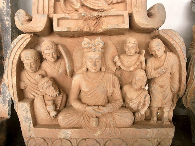 La plupart des statuettes datant du III ème siècle proviennent de Gandhâra, un ancien royaume situé dans le nord-ouest de l’actuel Pakistan et l’est de l’Afghanistan, centré sur les vallées de la Swat et de Kâboul, deux affluents de l’Indus. Le bouddhisme du Gandhâra et des régions avoisinantes, mélange d’influences indienne, perse et hellénistique, a vu la naissance du mahayana et influencé de manière importante le bouddhisme d’Extrême-Orient. Peshawar détient la plus belle collection d’objets de la civilisation du Gandhâra. Les statues représentent la plupart du temps des symboles de la religion bouddhiste comme la statuette d’un Bodhisattva moustachu orné valant un près de de 3000 euros ainsi qu’un Jataka (histoire de la naissance du Bouddha) qui montre la reine Maya donnant naissance au prince Siddhartha.